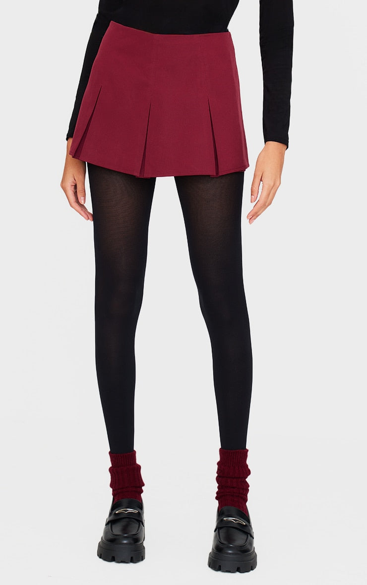 This chocolate tailored woven box pleat skater skort is a must have in your collection. With its seasonal chocolate shade, luxe tailored style, woven material and box pleat design, this skort will have you looking and feeling chic. Style with a pair of seasonal boots and a faux leather jacket for a look we're all after.