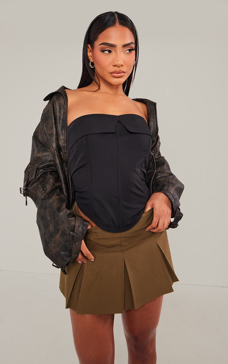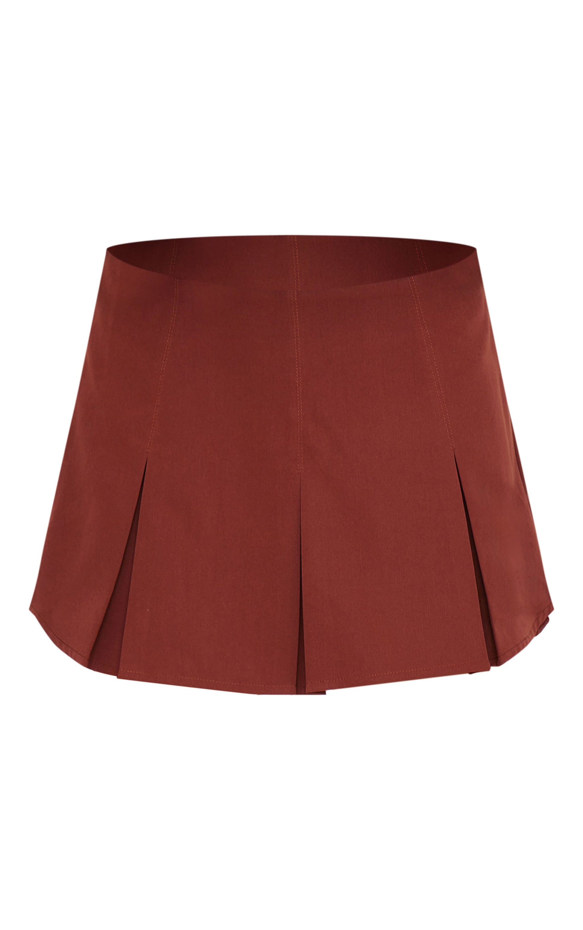 Chocolate Tailored Woven Box Pleat Skater Skort