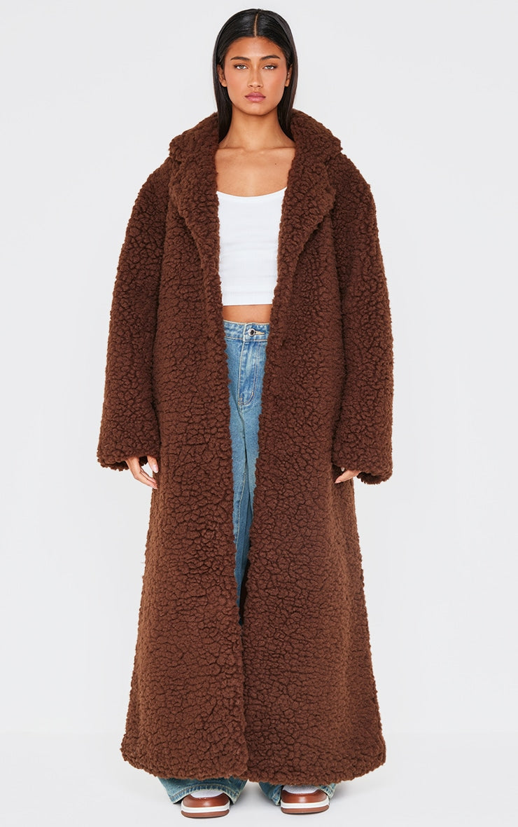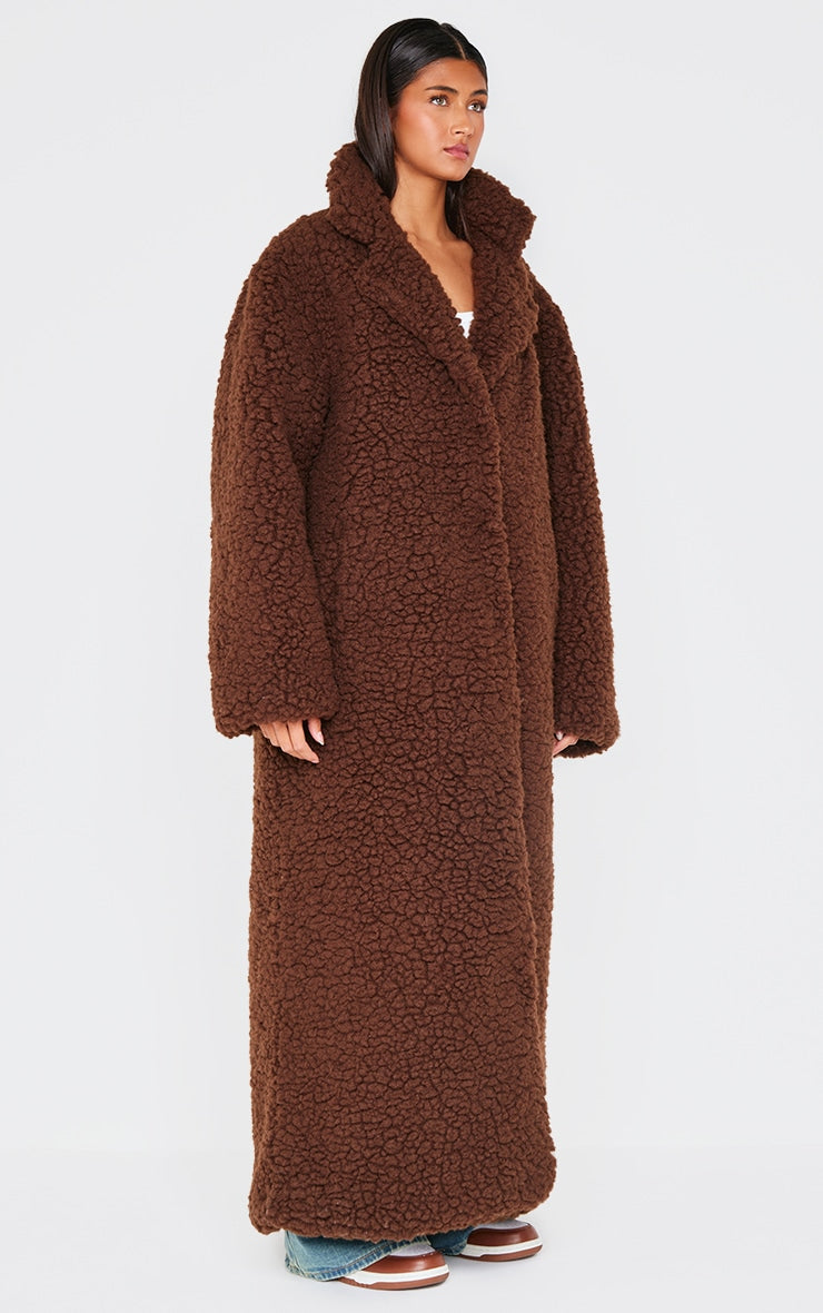 Cream Plush Borg Maxi Coat