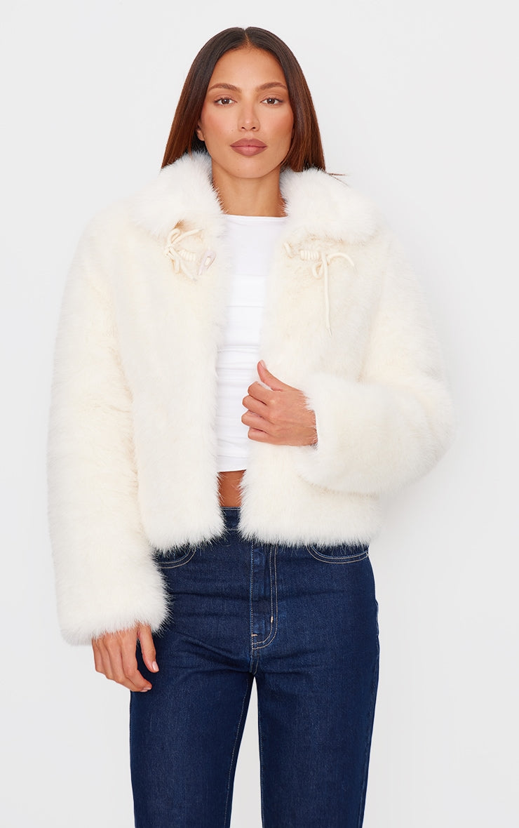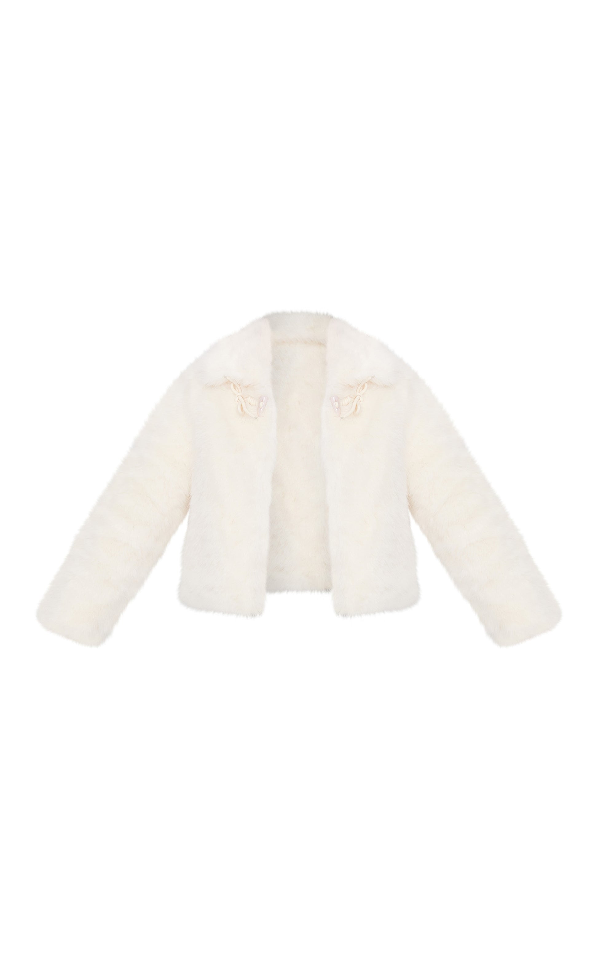 Ecru Plush Faux Fur Toggle Detail Jacket