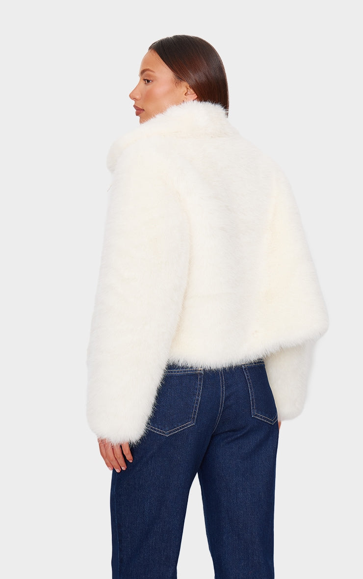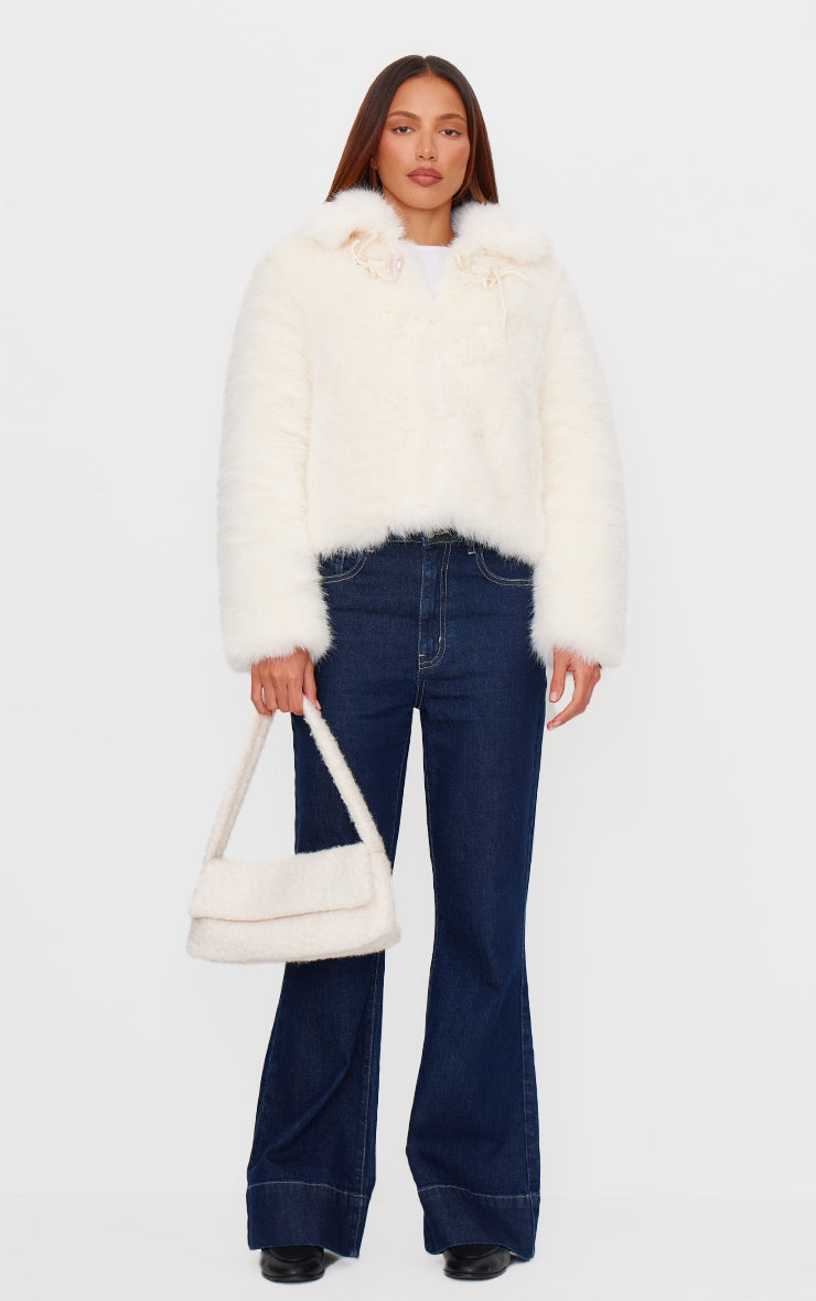 Look all kinds of chic in this ecru plush faux fur toggle detail jacket. Brought to you in an ecru hue plush faux fur material with a toggle detail, this jacket is all the new you need. How can you resist? Team with blue jeans, heeled boots and a faux fur mini bag for an elevated finish.